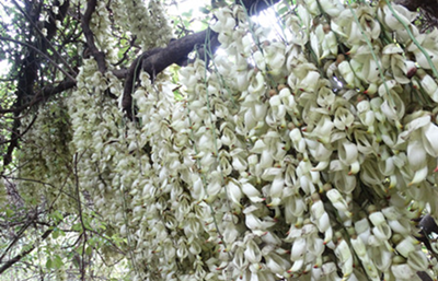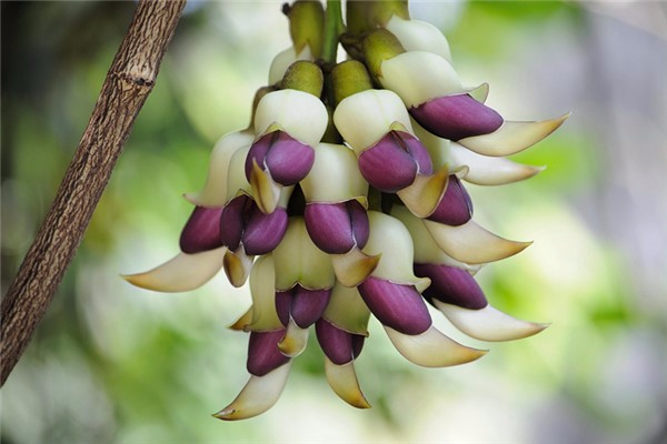 禾雀花开花时,会围绕着藤蔓长出一圈圈一簇簇的串状的花穗,花穗的形状像极了形态丰满的禾雀鸟。花开的最繁盛时,各形各态的禾雀整体呈现出一种“百雀朝枝”的美景,每观此景,由衷的愉快与高兴由内而外地弥漫出来。这种心情就是它传达的花语。