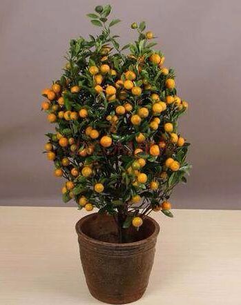 金桔,“桔”谐音为吉,“金”为钱财意,金桔也就因此有了吉祥招财的含意。一般家庭购买金桔树,主要是放在客厅里,讨口彩“吉利”、“锦上添花”等意。