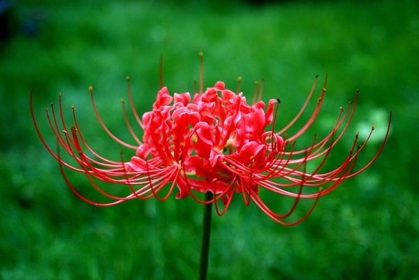 又名曼珠沙华,由于花叶永不相见,又被叫作彼岸花。红花石蒜虽然漂亮,但根茎有毒,球根含有生物碱利克林毒,但如误食,可能会导致中毒,轻者呕吐、腹泻,重者可能会导致中枢神经系统麻痹,有生命危险。