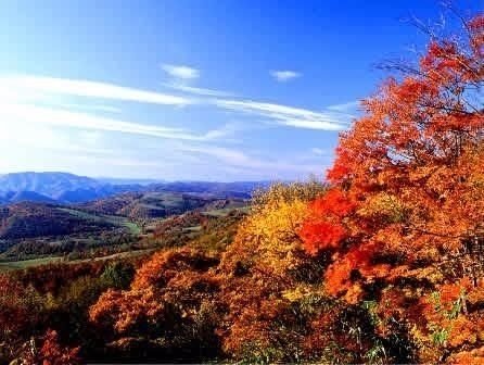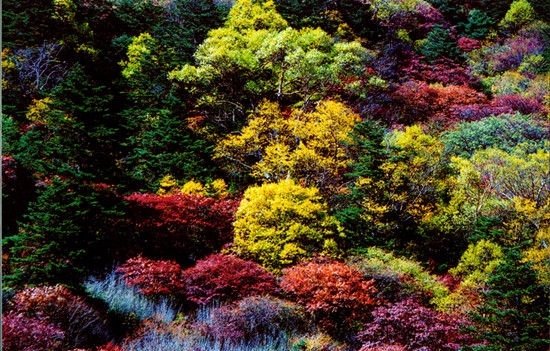 位于湖北省西北部的神农架现在正是一年中最美的季节。神农架的红叶种类很多,构成红叶主色调的是黄栌树,它的树叶经霜变后比枫叶还艳丽。最美是下小雨的时候,五彩的山腰上缠绕着如梦似幻的雾纱,像一幅多彩的油画,而远处连绵的群山在淡淡的雨幕下显出微微的黛色更像一幅清新淡远的水墨画让人心绪沉静。踩着松软的黄叶,踏着清澈的溪水,贪婪的呼吸着森林里清晰的空气,不失为一种最诗意的享受。