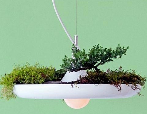 挂灯通常用做照明,当然也有装饰环境的作用,但是挂灯上放盆栽你见过了没?单调的挂灯上有了绿色盆景的装饰,似乎变得更加地有气息了,而且当工作劳累时,抬头看到这些可爱的小盆景心情也会喜悦几分。