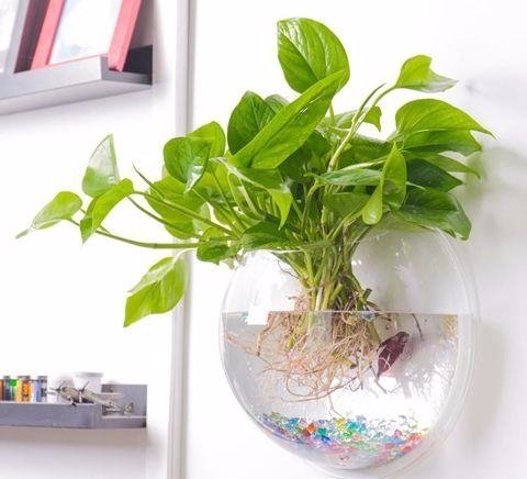 绿萝油绿的叶子那是非常的养眼,而且爬藤的植物放在家里,对于家居的装饰也绝对是一流的。配上一个透明的瓶子,再放点彩时把它挂在墙壁上,这种装饰不仅美观、大气而且使用性更强,绿色更是可以起到点缀的作用。