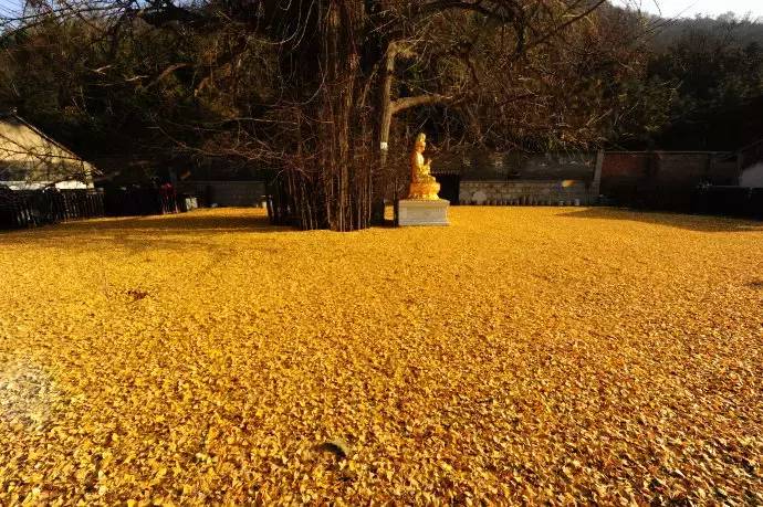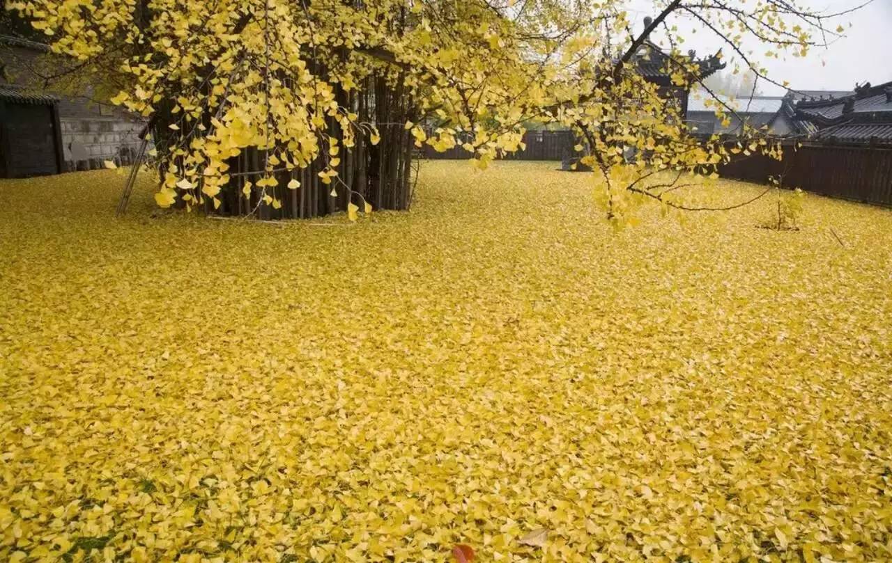 西安古寺——千年银杏落叶,宛若黄金毯