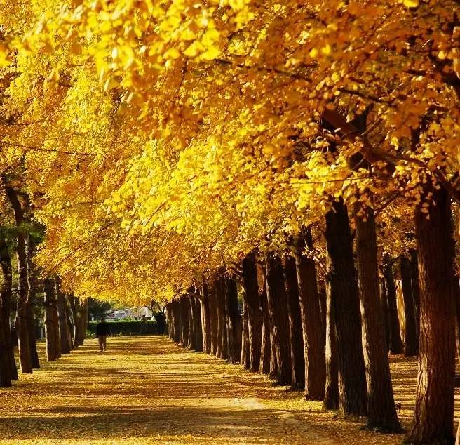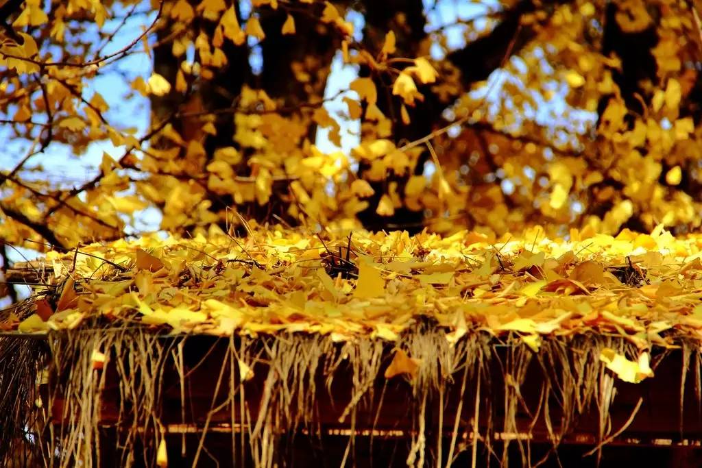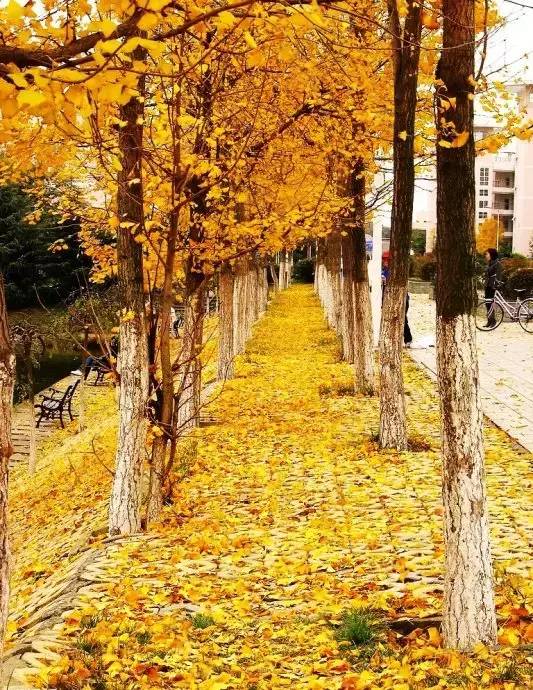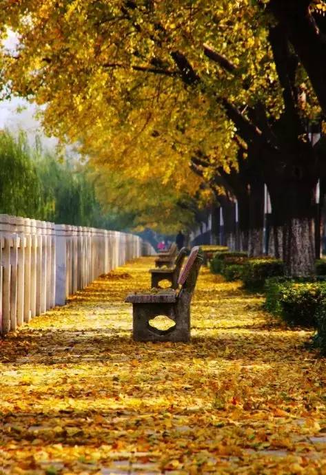 当看到东风无力百花残时,银杏叶的漫天飞舞更是一种悲壮的美。