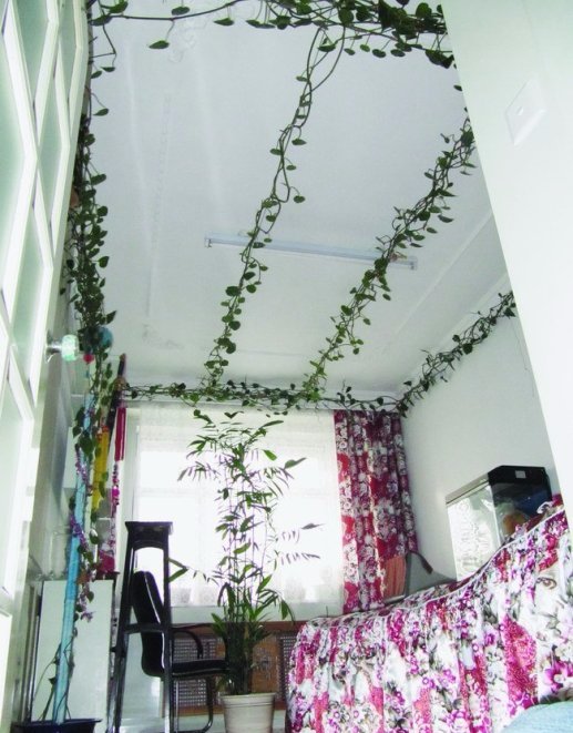 为了能让绿萝更好地生长,李雯夫妇在客厅的房顶搭起了铁丝做的花架子,又把绿萝整理后缠在上面,将客厅变身成为“葡萄架”。