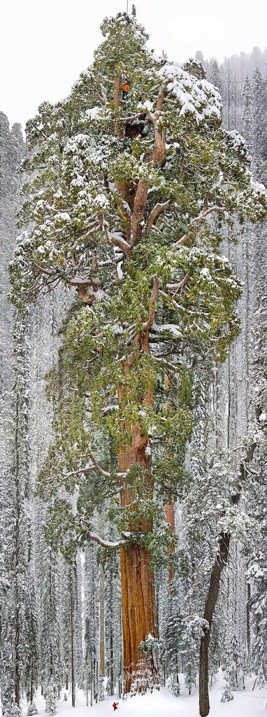 美国加州的世界第三大巨型红杉树:高73米,地面周长28米,拍它一张全景照,必须用多张照片拼接。