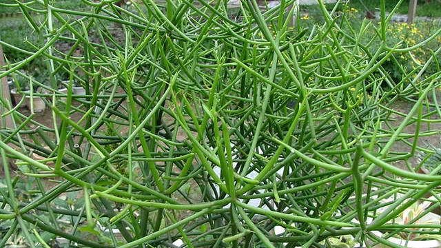 科学家们的研究报道更为引人关注,他们指出,光棍树枝条内部富含的白色浆汁更是神奇。一旦小枝条被折断,浆汁可迅速涌出结膜从而避免体内的水分过度散失;而且浆汁中的毒害作用还能有效地抵抗动物的侵袭起到保护植株的作用。此外,科学家们还从白色浆汁出提炼出了石油的主要成分——烃类物质。如今,光棍树已成为世界范围内广受重视的可再生、绿色环保的优良生物能源,有望在不久的将来造福人类。