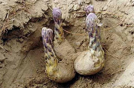 沙漠人参肉苁蓉(学名:Cistanche deserticola Ma),别名疆芸、寸芸、苁蓉、查干告亚(蒙语),属濒危植物。肉苁蓉是高大草本,株高40-160厘米,大部分长在地下。肉苁蓉的花期为5-6月,果期为6-8月。肉苁蓉主生长在新疆、内蒙古阿拉善盟等地,不过,甘肃、宁夏也有分布。