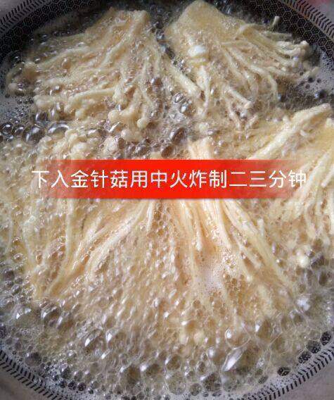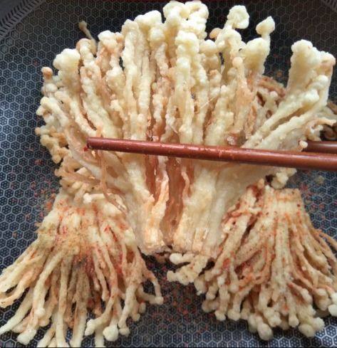 然后把金针菇放入油中,炸四五分钟就可以捞出了