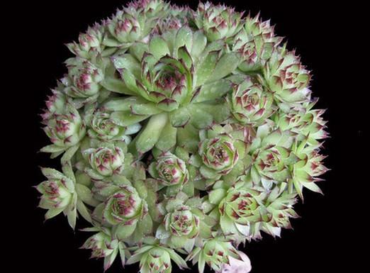 9.观音莲 其品种很多,叶盘直径从3厘米至15厘米都有,肉质叶匙形,顶端尖,叶色依品种的不同,有灰绿、深绿、黄绿、红褐色等,叶顶端的尖既有绿色,也有红色或紫色,比较受欢迎的多肉。