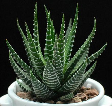 3.条纹十二卷 肥厚叶片成接紧凑排列,清新高雅,形态精致秀丽,小巧玲珑。深绿叶上的白色条纹对比强烈。相信很多人都养过。