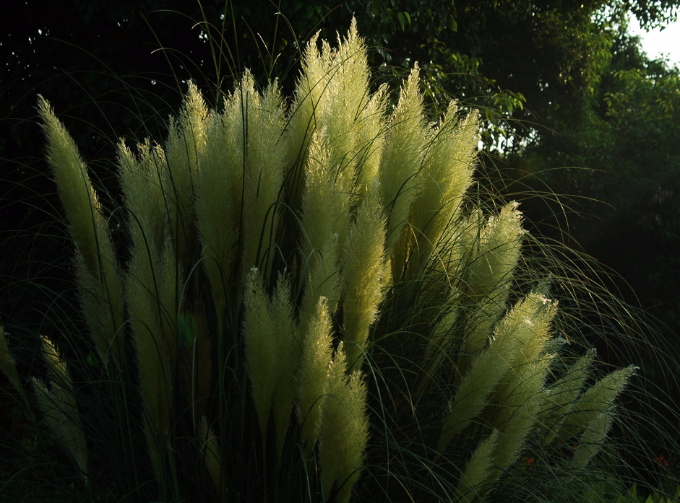蒲苇花八月开始抽穗,穗长而美丽,个头高大,庭院栽培壮观而雅致;或植于岸边,入秋赏其银白色羽状穗的圆锥花序,具有优良的生态适应性和观赏价值。