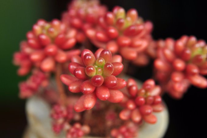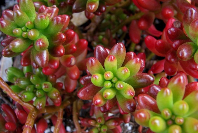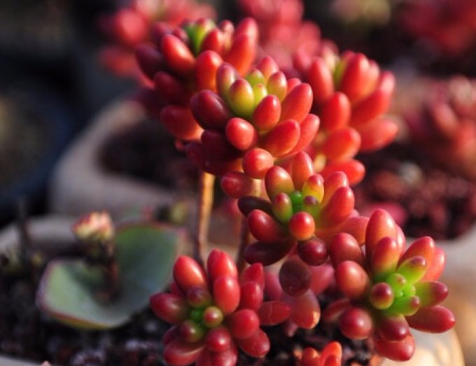 虹之玉外形酷似绿龟之卵,有着婴儿手指一般的叶子,在春天到夏天的繁殖期里呈美丽的绿色。秋冬开始红叶,阳光充分且干燥的环境下能愈发变成红色。如果阳光不足,植物容易徒长。易叶插,很容易从掉落下来的叶子上发根,种植简单。