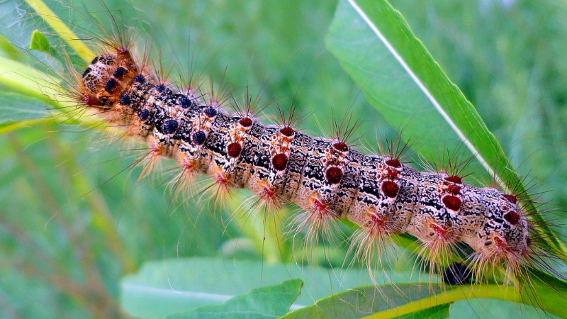 防治:找出毛虫,逐一捏死。毛虫太多则用适当的杀虫剂对付。