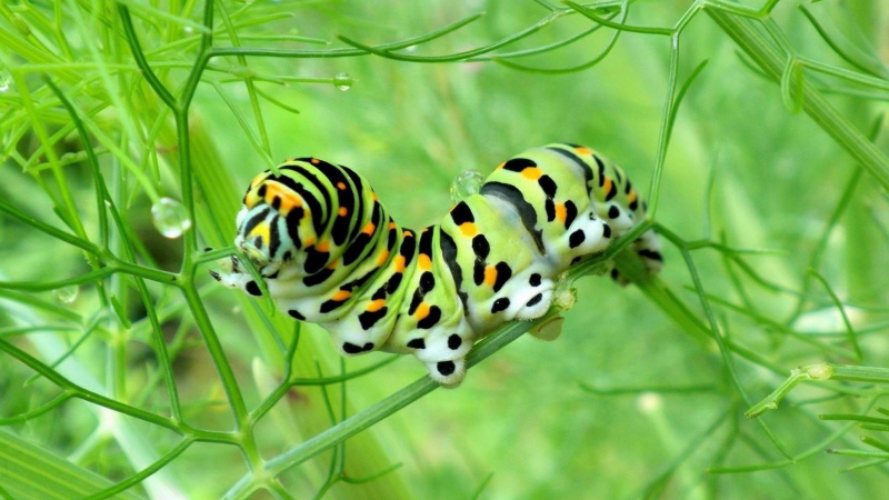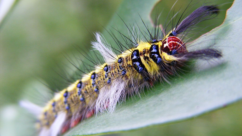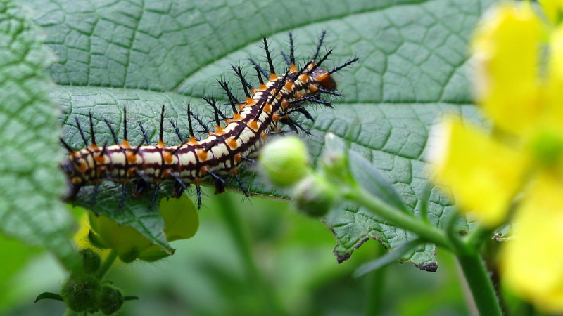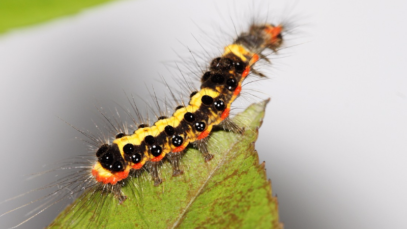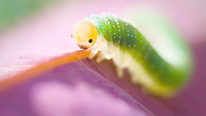 毛虫很少侵害室内植物,但是小毛虫很可能钻附在刚买回来的植物上被带到家中;成虫(蛾和蝴媒)会飞进室内在己成长的植物上产卵,毛虫咬嚼叶片,叶片出现孔洞,叶缘崩缺。某些类型的毛虫(如夜盗蛾幼虫)侵占茎的基部。任何叶子柔软的植物都容易遭受毛虫的侵害。